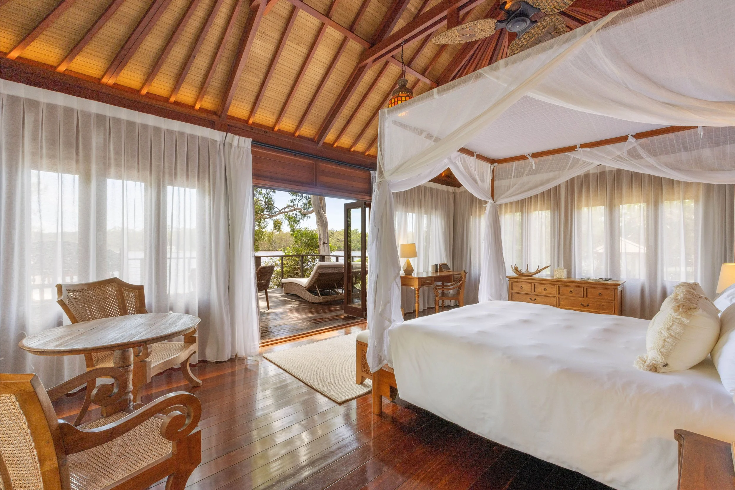 Set on its own private island along the Noosa River, Makepeace Island offers a level of exclusivity that is rare even in luxury travel. Designed with a blend of Balinese-inspired architecture and contemporary Australian style, the estate is made for private groups seeking a fully tailored escape.