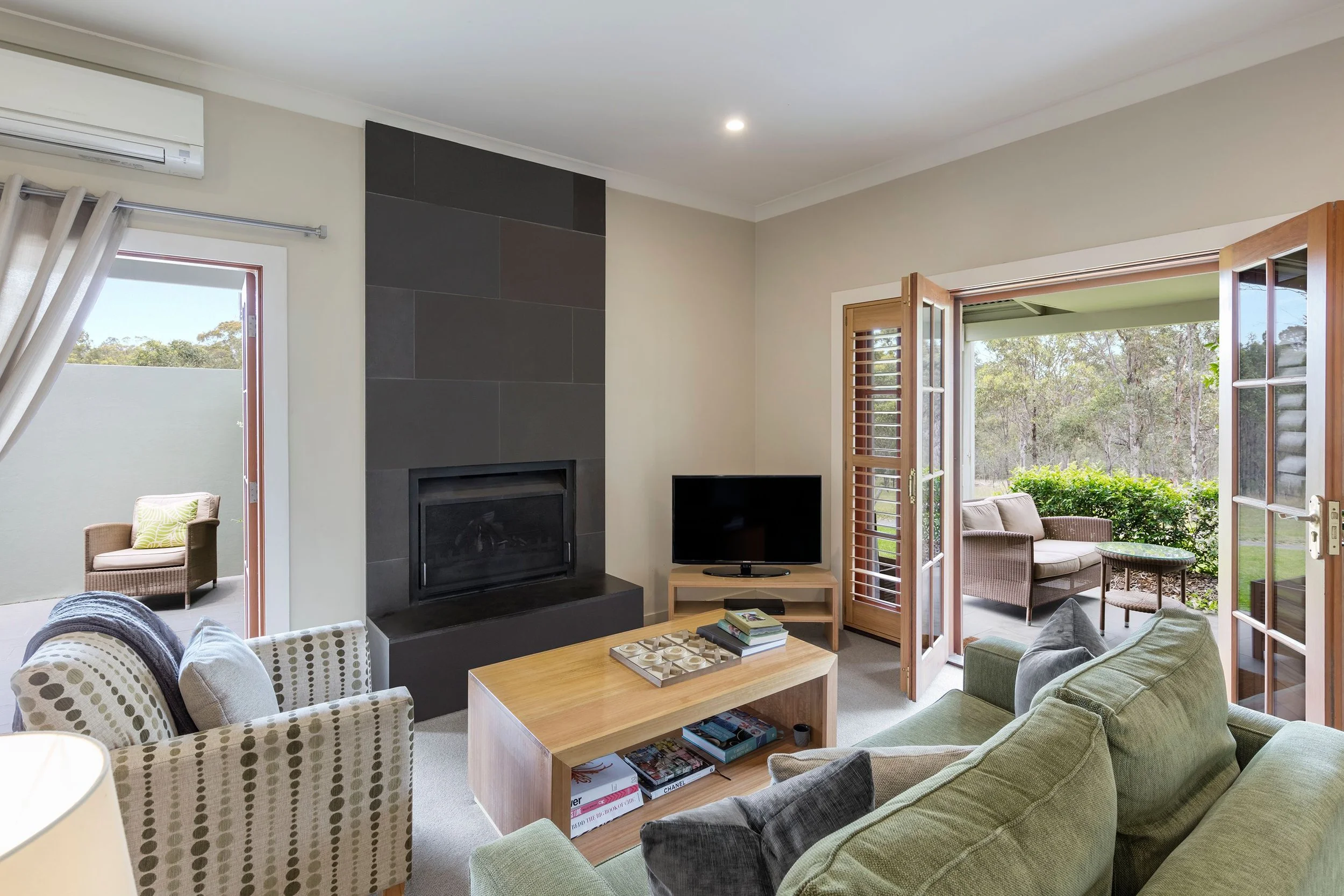 Each suite is designed for comfort and atmosphere, with fireplaces, soft textures, and private outdoor spaces that open onto the surrounding landscape. Days here are centred around good food, local wine, and the simple pleasure of slowing down.